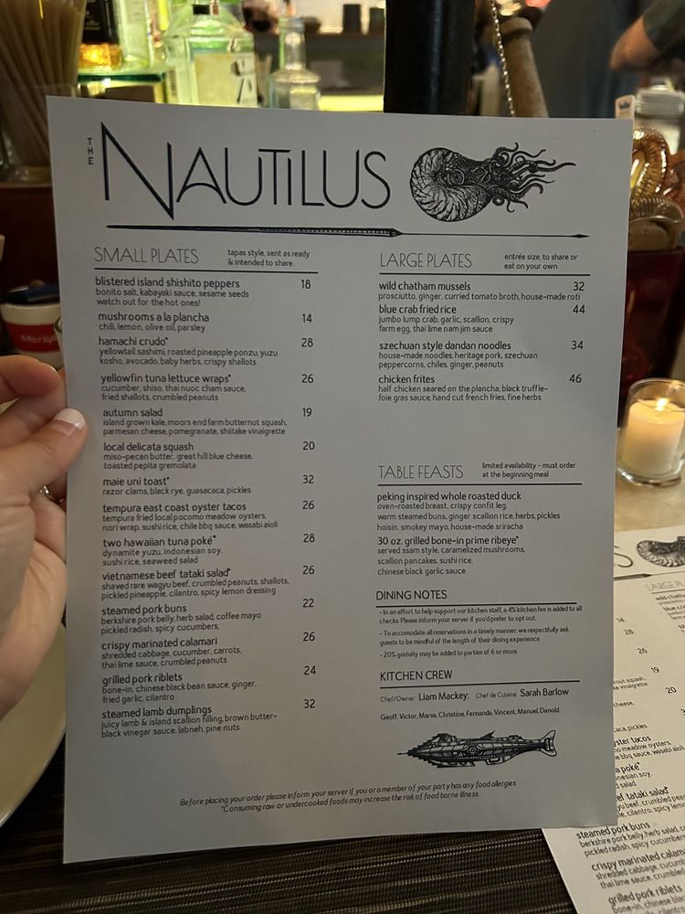 The Nautilus radiates a special vibe, combining exceptional food with attentive service. Whether you’re enjoying dinner with family or unwinding at the bar with friends, this welcoming environment makes every visit memorable. Settle in for a joyful evening filled with laughter, good cocktails, and captivating dishes.